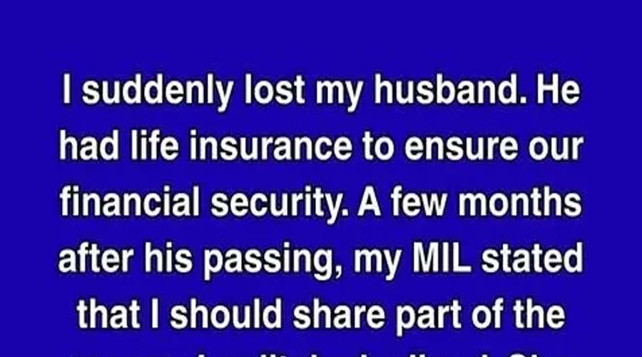 I suddenly lost my husband. He had life insurance to ensure our financial security. A few months after his passing, my MIL stated that I should share part of the money.