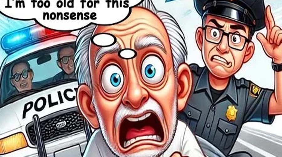 An 85-year-old man was driving down the highway when he suddenly saw flashing lights in his rearview mirror. A police officer was pulling him over! The old man sighed and muttered, “Not again…” but instead of stopping, he hit the gas.