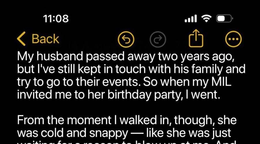 Melissa attended her late husband Mark’s mother Kara’s birthday party, hoping to honor Mark and his grandmother Eleanor’s memory. Kara had never been warm toward Melissa, and the evening was filled with subtle jabs and uncomfortable moments. Eventually, Kara’s hostility boiled over — she publicly told Melissa to leave, declaring she no longer belonged in the family.