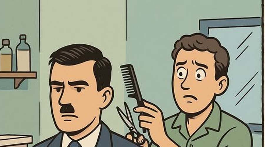“Well, for starters, I want you to cut my right sideburn an inch shorter than my left. For my mustache, I want the sides chopped so it looks a little like Hitler’s. Cut the hair on the nape of my neck at a 5-degree angle instead of straight across.
