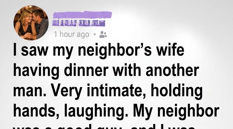 A single glance across a restaurant made me feel certain I understood someone else’s life. The evening had been ordinary—soft music, warm lighting, the quiet clatter of dishes—until I noticed Sarah, my neighbor’s wife, sitting in a corner booth with another man. They leaned close, laughing effortlessly, their faces relaxed in a way that spoke of comfort and trust. In that instant, my mind constructed an entire story from seconds of observation.