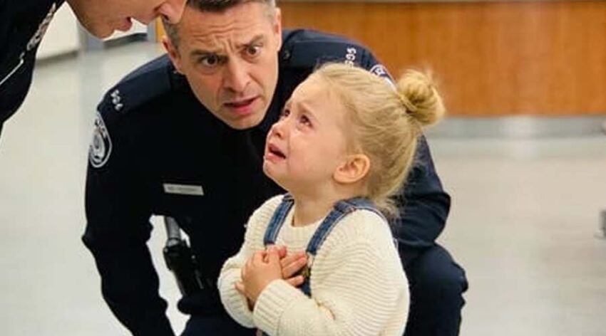 The officer was bewildered at first, but then he couldn’t help but smile. He gently hugged the crying child and whispered to her: