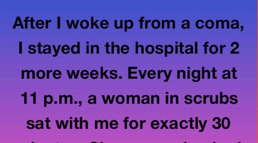Every night at exactly eleven, a woman in scrubs came into my room, pulled up a chair, and talked for thirty minutes. She never checked my vitals or touched the machines—she just told ordinary stories about her garden, a piano recital, a lemon cake recipe. I barely had the energy to respond, but I listened like her voice was oxygen.