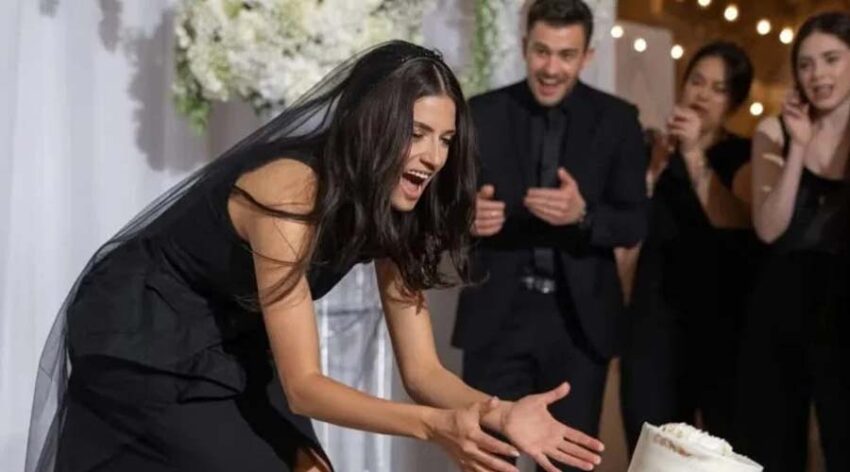 She stood by the cake in a black mourning dress, a dark veil over her face. The fabric clung to her in a dramatic way, heavy and deliberate. She looked as if she were at a funeral, not her older sister’s wedding.