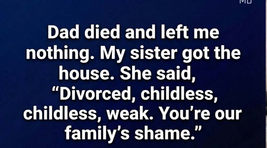 Dad died and left me nothing. My sister got the house. She said, “Divorced, childless, weak. You’re our family’s shame.” That night, I was sent Dad’s broken couch. I sent it for repair. The guy called, in panic: “Come NOW!” My blood went cold when I found hidden.At the workshop, the repairman lifted a torn cushion and revealed a narrow wooden panel built into the frame. Inside lay a stack of envelopes, a worn notebook, and a small tin box wrapped carefully in cloth.