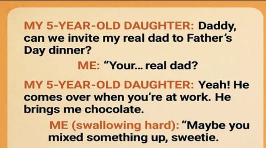 Instead of rushing into panic or letting confusion land on her tiny shoulders, I gently asked her more questions, hoping to understand without alarming her. She spoke with the honesty only children possess, mentioning visits while I was at work and little moments she thought were just part of everyday life. I didn’t want her to feel responsible for anything she didn’t yet grasp, so I suggested we turn her idea into a “surprise dinner game” for Father’s Day. It allowed her to express herself freely while giving me a chance to understand the situation better. As she smiled with excitement, I felt a mix of worry and determination settle in. Whatever truth lay ahead, I wanted to approach it calmly—and with care for everyone involved.