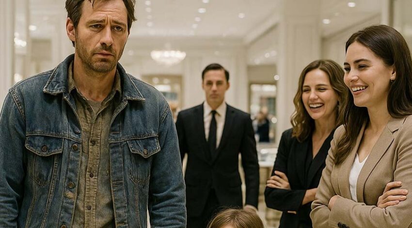 The afternoon wind bit through his worn jacket as a tired single father pushed open the glass doors of a luxury boutique. His coat was torn at the sleeve, and his shoes had seen far too many miles. Holding his little daughter’s hand, he whispered gently, “We’ll just look for something small, okay? It’s your birthday, after all.”Inside, bright chandeliers sparkled above polished marble floors. Every inch of the place spoke of money and elegance. Customers moved slowly, wrapped in fur coats and carrying designer bags.ut the moment the father stepped inside, the air shifted. Two saleswomen by the counter exchanged knowing glances—one smirked, the other let out a soft laugh.