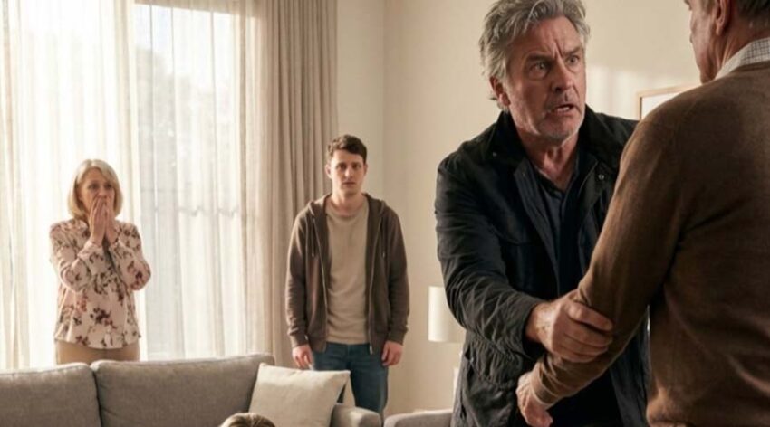 The house smelled wrong — stale coffee, artificial cleaner, something sour beneath it. Mark stood near the fireplace, stiff and pale, staring at the floor.