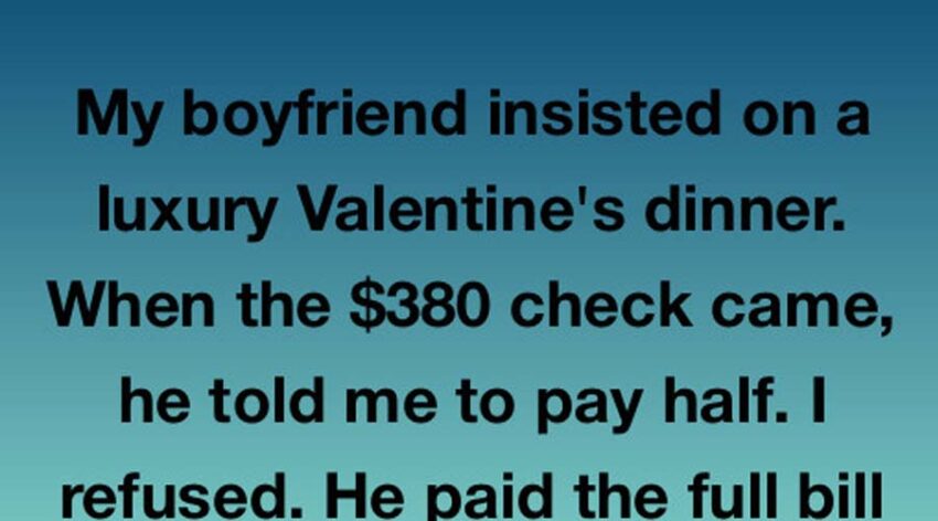 My boyfriend insisted on a luxury Valentine’s dinner. When the $380 check came, he told me to pay half. I refused. He paid the full bill in silence, got up, and walked out. The waitress came up and whispered, “Your boyfriend left a note.” My heart dropped when I read it. It said, “Since you don’t believe in investing equally, maybe you’re not ready for a partnership. Think about that.”