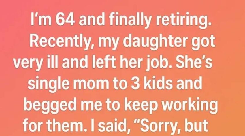 My daughter, a single mother of three, became very ill and had to leave her job. With tears in her eyes, she asked me to keep working a little longer to help her family. My heart ached, but I said, “I’m sorry, but this time I must put myself first.” Her reply cut deep: “You’ll regret this.”
