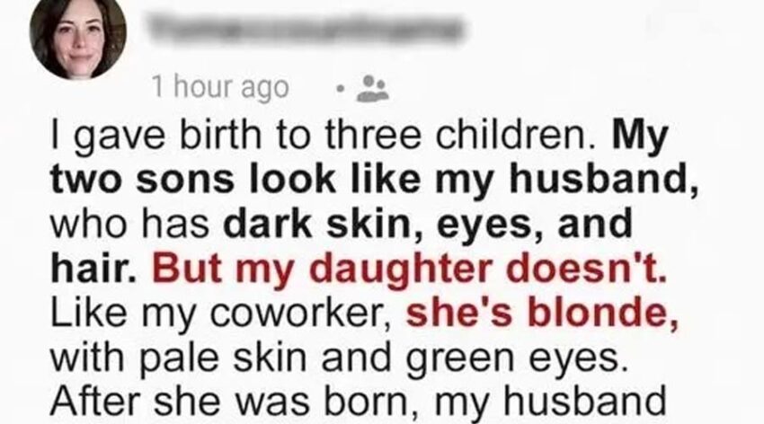 I gave birth to three children. My two sons look like my husband, who has dark skin, eyes, and hair. But my daughter doesn’t.