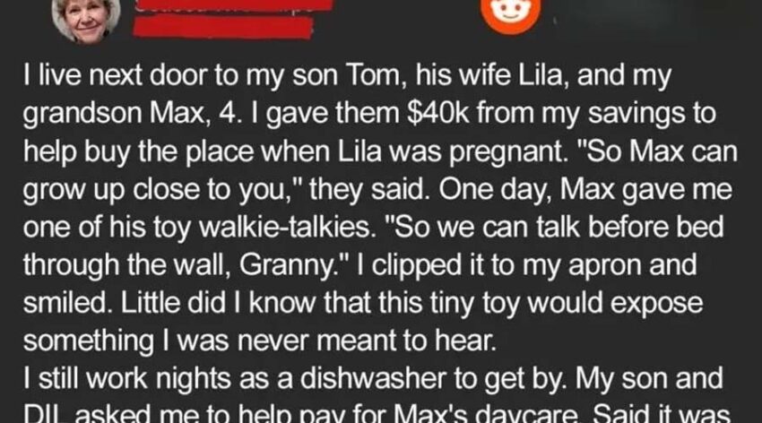 All my life, I believed love was an investment that always paid back in loyalty. I raised my son alone after my husband died, working double shifts, skipping vacations, pouring every spare dollar and ounce of strength into his future. When Thomas married Lila and they needed help buying their apartment at Skyridge, I handed over $40,000 from my retirement without hesitation. I told myself it was worth it to keep family close. My grandson Max became the light of my days, his giggles echoing through my quiet kitchen. When he gave me one of his toy walkie-talkies so we could “talk anytime,” it felt like the sweetest gift. I clipped it to my apron, proud to be the grandmother who was always there, always giving, always loving without limits.