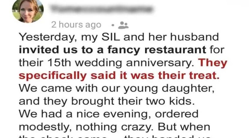 I asked, “Didn’t you say this was your treat?” Amanda smiled sweetly. “We figured we’d split it by household. It’s modern etiquette.” I wanted to argue, but I stayed calm.