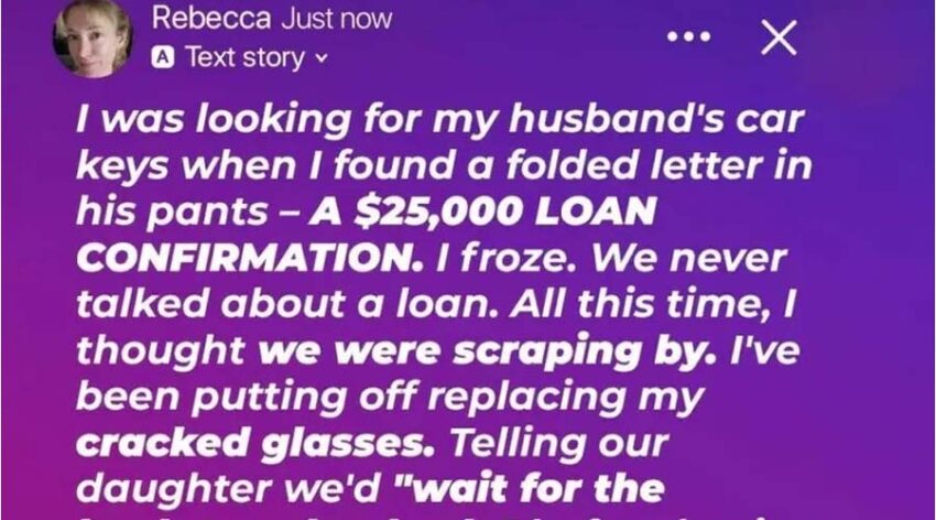 While searching for her husband Andrew’s car keys, a woman stumbled upon a folded letter in his pants—a $25,000 loan confirmation. Shocked and confused, she sat down to process it. They’d been married for 15 years, living frugally with their daughter Emma, barely making ends meet.