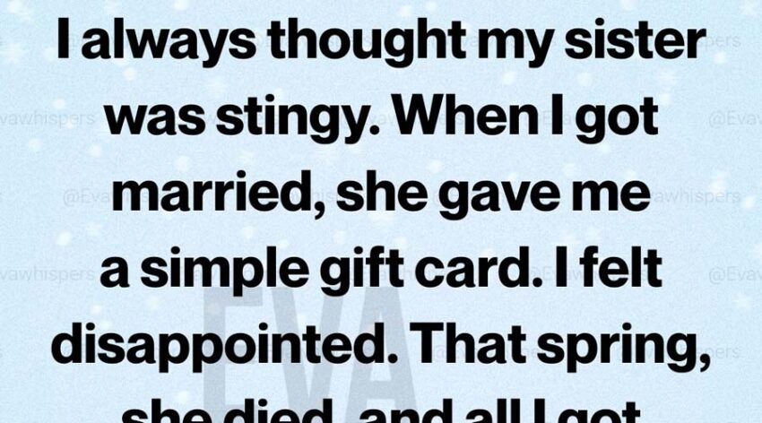 On her wedding day, Emma received a small white envelope from her older sister Claire. Inside was a simple gift card to a home goods store. Emma smiled and thanked her, but privately she felt a hint of disappointment. Claire had always been careful with money, saving every spare dollar while Emma lived more freely, spending on experiences and small luxuries. The gift card seemed modest compared to the big celebrations around them, so Emma quickly set it aside and continued enjoying her new life with her husband. But only a few months later, tragedy struck. Claire passed away suddenly from a heart condition no one knew she had. The loss shook the entire family. After the funeral, a family friend handed Emma another envelope from Claire. Hoping for a message or final words, Emma opened it, only to find it empty. The discovery left her confused and quietly hurt, wondering if perhaps Claire had nothing to leave behind after all.