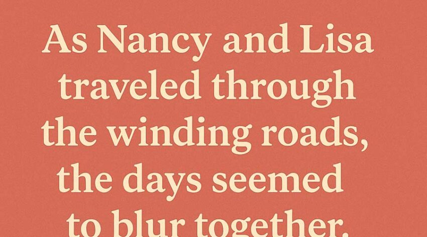 As Nancy and Lisa traveled through the winding roads, the days seemed to blur together. The sisters had always been close, but this trip was different—it was a chance for them to escape the demands of their everyday lives and reconnect.