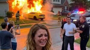 • On my anniversary, my billionaire parents gifted me a sports car. The next day, my husband came to my office and demanded the keys, saying, “This sports car is mine.” When I refused, he angrily left the office. A few hours later, he called me, laughing, “I burned your dream sports car.” I rushed to the house, but when I arrived, I couldn’t control my laughter because the car he burned was…