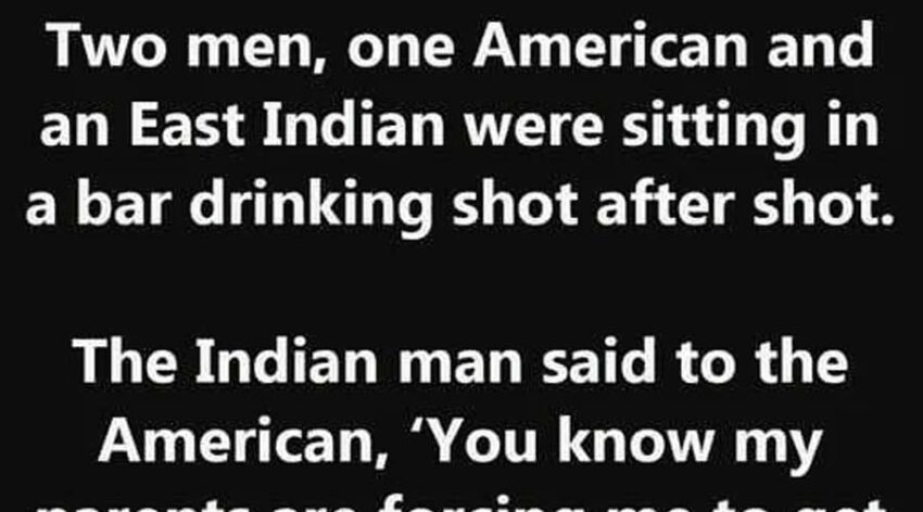 Two men, one American and an East Indian were sitting in a bar drinking shot after shot. The Indian man said to the American, ‘You know my parents are forcing me to get married to this so called homely girl from a village whom I haven’t even met once.’ We call this arranged marriage. I don’t want to marry a woman whom I don’t love… I told them that openly and now have a hell lot of family problems.’