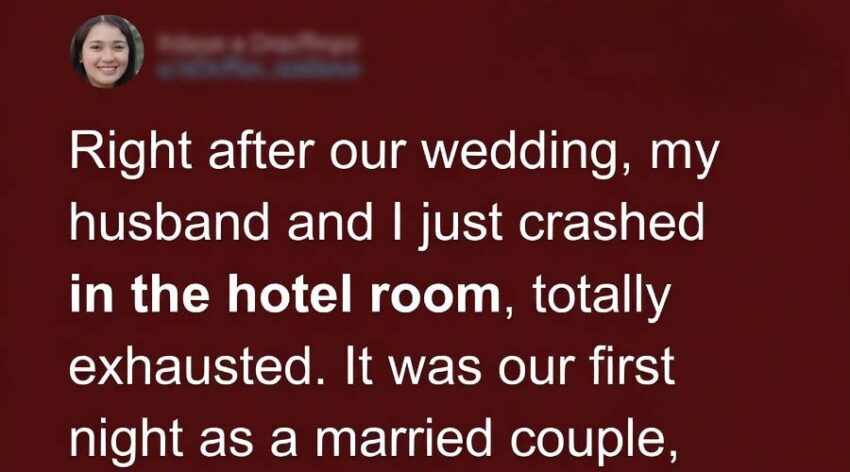 On our wedding night, I was exhausted and hesitant to start the celebration as expected. When I asked Scott for some time to talk instead, he agreed, though his disappointment was palpable. However, in the middle of the night, I awoke to find our bed shaking.