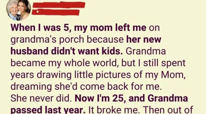Mark—her new husband—had entered our lives a few years after my dad passed away. Even as a child, I could sense that he didn’t like me. But what I couldn’t comprehend was why we were standing on my grandmother’s porch—my dad’s mother—on a day that felt so final.