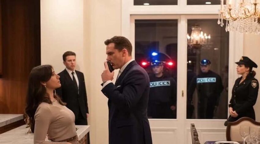 Less than five minutes later, flashing lights reflected against the enormous windows of the Ashcroft home, turning the elegant dining room into a scene of stunned silence as guests began quietly gathering their coats.