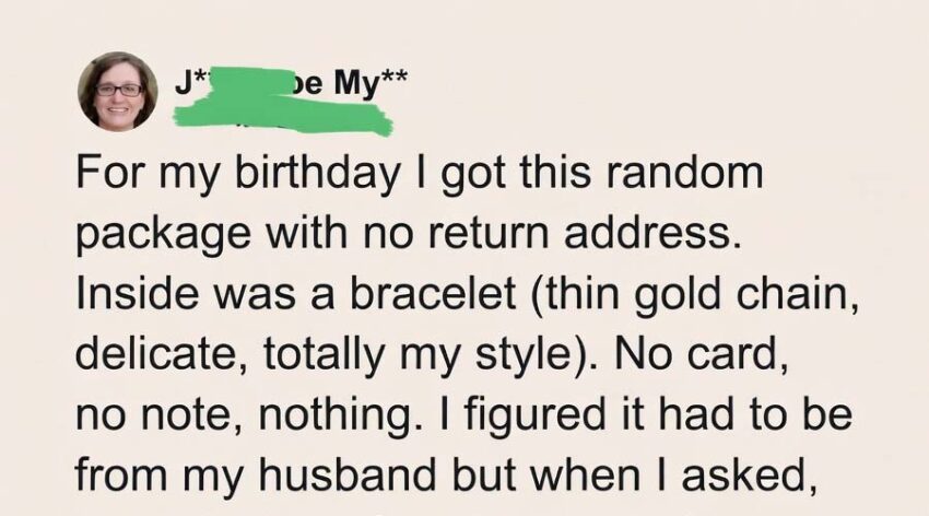 A mysterious gold bracelet arrived at my door one ordinary Tuesday. There was no sender, no note—just a delicate vintage piece tucked inside a velvet box.I assumed my husband, Mark, had surprised me, but when he came home, he was just as puzzled as I was. I asked friends and family, but no one claimed it.