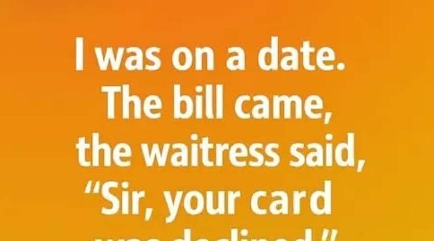 I was on a date. The bill came, and the waitress said, “Sir, your card was declined.” My date’s face turned pale with