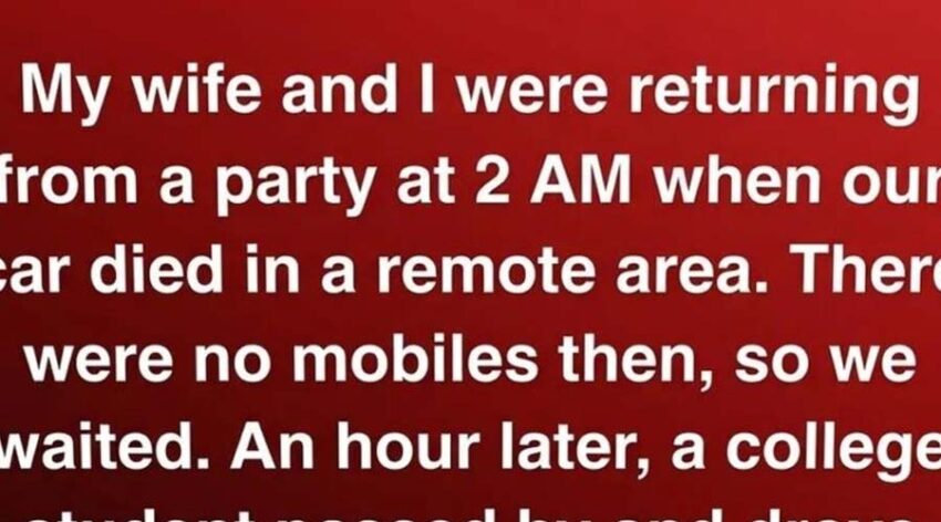 An hour passed before headlights appeared in the distance. A small, worn-out car pulled over, and a young man leaned across the passenger seat to ask if we were alright. He looked like a college student—tired eyes, a kind smile, and the sort of calm presence you don’t question. He drove us into town without hesitation. When we tried to offer him money, he shook his head gently and said, “Just help someone else when you can.” Then he drove off into the night, leaving behind nothing but gratitude we never quite forgot.