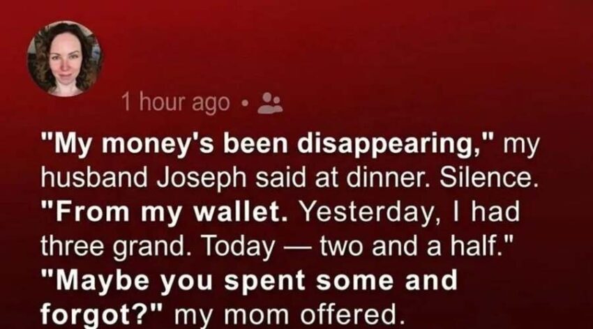 It started with a simple comment over dinner. My husband Joseph set his fork down and said quietly, “My money’s been disappearing.” The room fell still. He explained that just the day before, he had counted three thousand dollars in his wallet, but now a noticeable amount was gone.