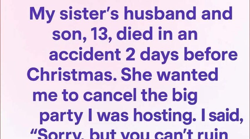 When my sister’s husband and 13-year-old son died in a tragic accident just two days before Christmas, her world shattered. She begged me to cancel the big Christmas party I had planned for weeks. I told her gently, “I’m sorry, but I can’t let this ruin the holiday for everyone else.” She said nothing, just looked at me with eyes full of pain.