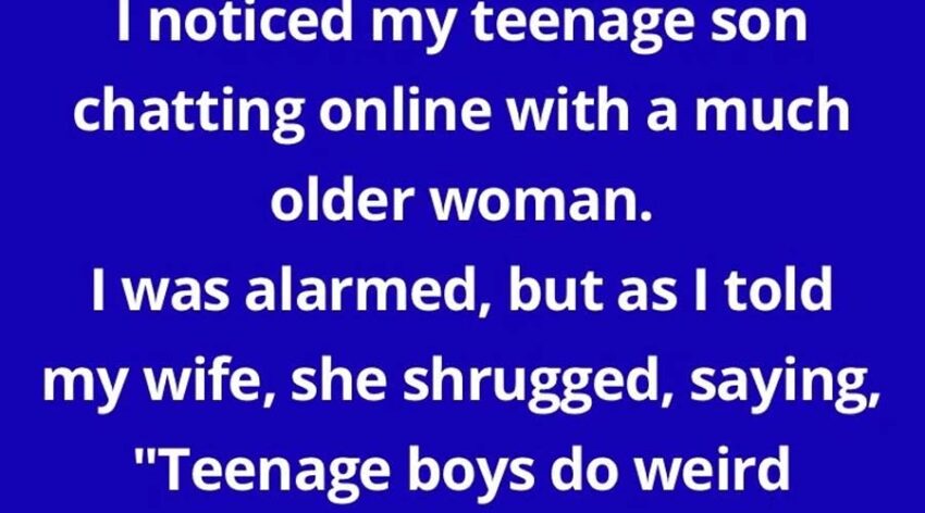 I noticed my teenage son chatting online with a much older woman. I was alarmed, but as I told my wife, she shrugged, saying, “Teenage boys do weird things. Don’t overreact.” I tracked the woman down and knew her address.