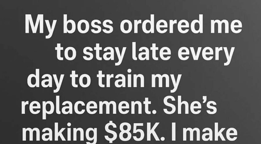 My boss ordered me to stay late every day to train my replacement. She’s making $85K. I make $55K—same role.