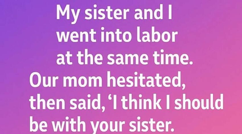 My sister and I went into labor at the same time. Our mom hesitated, then said, ‘I think I should be with your sister. She’s younger, and she’s never been through this before.’ After my baby was born, I texted my mom.