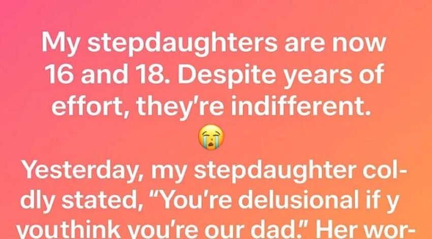 My stepdaughters are now 16 and 18. Despite years of effort, they’re indifferent. Yesterday, my stepdaughter coldly stated, “You’re delusional if you think you’re our dad.”