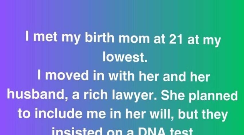 I met my birth mom at 21 at my lowest. I moved in with her and her husband, a rich lawyer. She planned to include me in her will, but they insisted on a DNA test.
