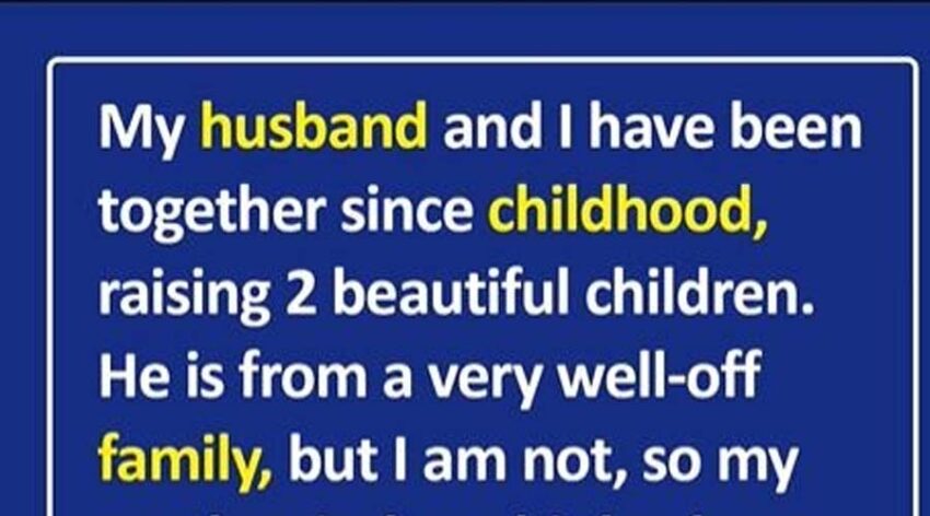 My husband and I have been together since childhood, raising 2 beautiful children. He is from a very well-off family, but I am not, so my mother-in-law thinks that I am with him because of money.