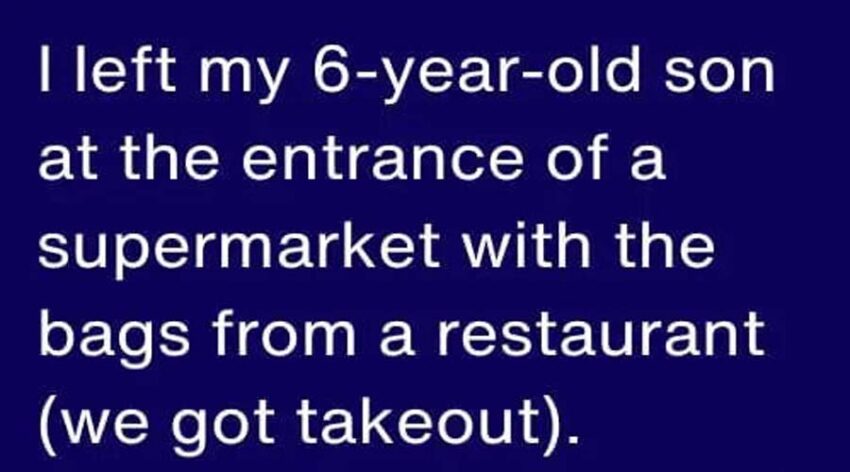 I left my 6-year-old son at the entrance of a supermarket with the bags from a restaurant (we got takeout). I’m standing in line at the checkout, and he yells that some woman took the bags. I ran out, and the woman calmly walked away. After I caught up with her, she seriously told me that they were her bags! I just grabbed them and left.