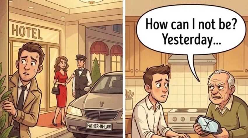 At the hotel with my mistress: Yesterday, I went to a hotel with my mistress, and at the entrance, I see my father-in-law’s car parked. I lost all desire and, of course, if he saw me, I would have problems. I explained to my mistress that today was impossible, and she left upset.