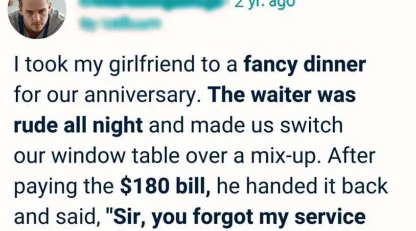He placed the receipt down and said, loud enough for nearby tables to hear, “Sir, you forgot my service fee.”