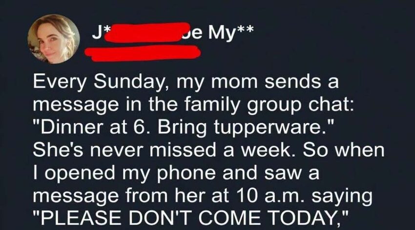 Every Sunday, my mom hosted dinner—rain or shine. After Dad passed away three years ago, those meals became our family’s lifeline, a way to keep his memory alive and to hold on to each other. So when Mom sent a text saying, “Please don’t come today,” with no explanation, my brother and I knew something wasn’t right.