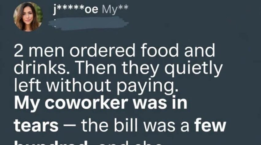 Two men ordered food and drinks. Then they quietly left without paying. My coworker was in tears the bill was a few hundred dollars, and she counted every penny, knowing she couldn’t afford to cover it herself.