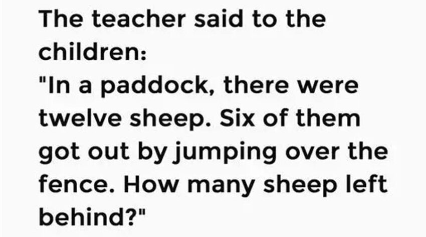 “In a paddock, there were twelve sheep. Six of them got out by jumping over the fence. How many sheep left behind?”