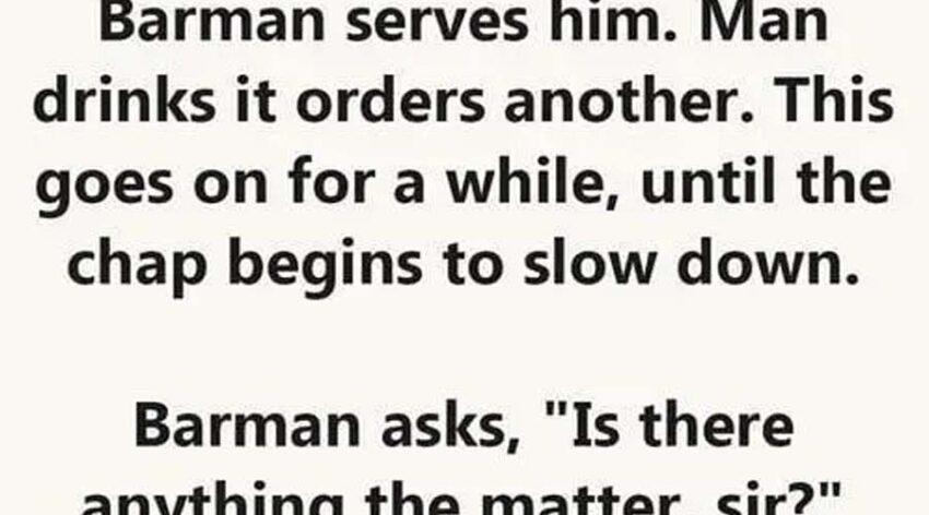 Man drinks it orders another. This goes on for a while, until the chap begins to slow down.